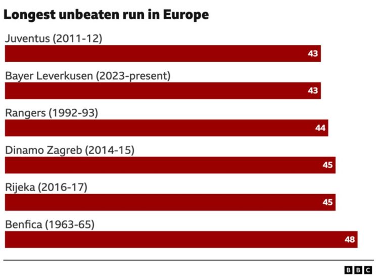 Their unbeaten run stands at 43 games in all competitions and should they maintain that for the rest of the season, they will break the record set by Benfica in the 1960s.