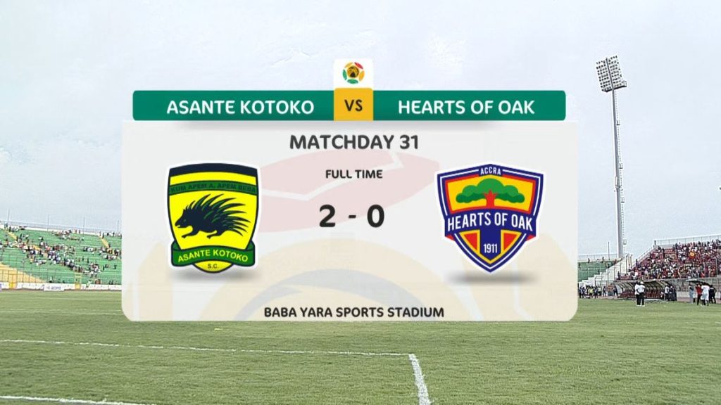 With this win, Asante Kotoko advances to ninth place with 43 points, while Hearts of Oak sits in 13th place with 38 points, placing them four points away from the relegation zone.