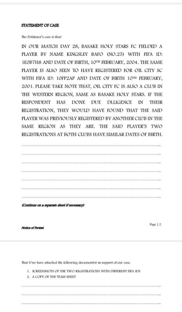 The Cape Coast based club claims that, Holy Stars player number (25) Kingsley Bafo who was featured in the match week 28 played at the Robert Mensah Sports Stadium which ended 2-0 for the away side was ineligible to play.