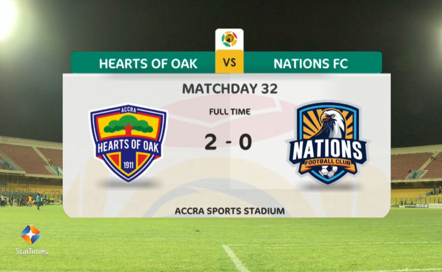 Aboubakar Ouattara and Hearts of Oak can breathe a sigh of relief thanks to a crucial 2-0 victory of Nations FC at the Accra Sports Stadium Friday night.
