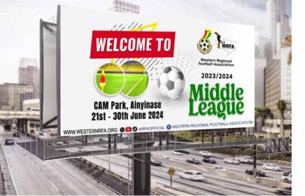Western Regional Football Association has announced that, the 2023/24 Division Two Middle League will be played at the Crosby Awuah Memorial Park from 21st June 2024 to 30th June 2024.