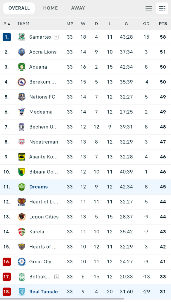 Other clubs that can be relegated after the last round of games include Karela United, Legon Cities, and Heart of Lions.