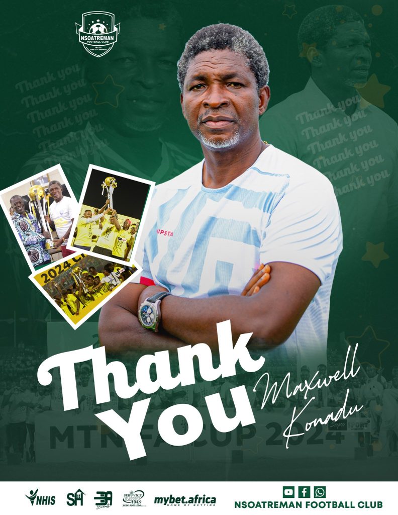 Nsoatreman Football Club has mutually agreed with head coach Maxwell Konadu to end the contractual relationship between the parties.