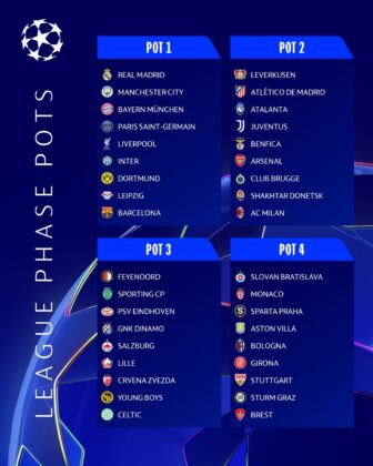 Teams will be placed in their seeded four pots, where each team faces off two teams from each pot in the home and away format, and then UEFA’s software decides all eight opponents.