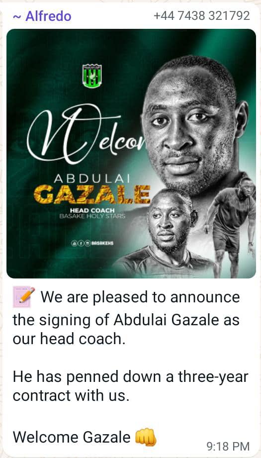 Ghana Premier League newcomers Basake Holy Stars has officially unveiled Abdulai Gazale as their new head coach for the 2024/25 season on a 3-year deal.