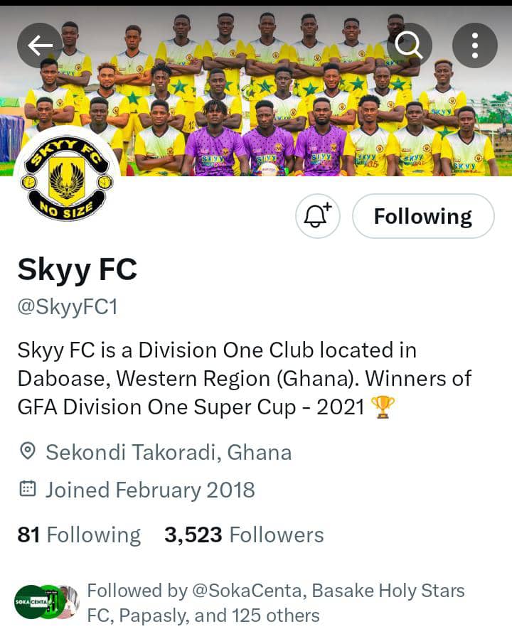 In the Western, where we are geographically located, Skyy Fc is the most followed club ( 27.5k). Daboase based club are ahead of the former Ghana League Champions Eleven Wise ( 12.9k), Nzema Kotoko (14.1) and Sefwi All Stars (6.8k).