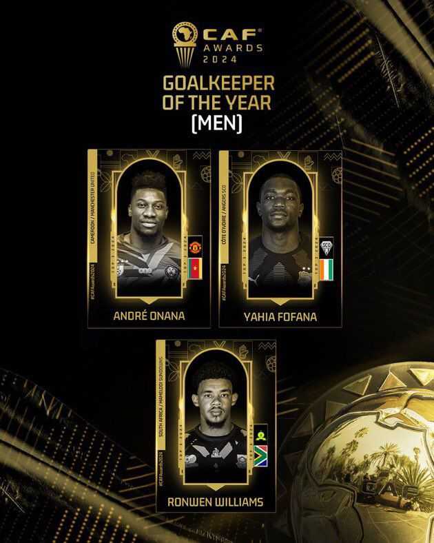 Andre Onana (Cameroon / Manchester United), Yahia Fofana (Ivory Coast / SCO Angers) and Ronwen Williams (South Africa/ Mamelodi Sundowns) has been shortlisted as the final three to compete for the CAF men’s goalkeeper of the year award.