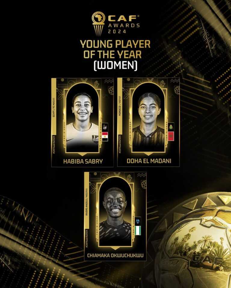 Three top young talent Habiba Sabry (Masar/ Egypt), Doha Madani (ASFAR/ Morocco) and Chiamaka Okwuchukwu (Rivers Angels/Nigeria) would be aiming to dethrone Nesryne El Chad and become the next CAF women’s young player of the year.