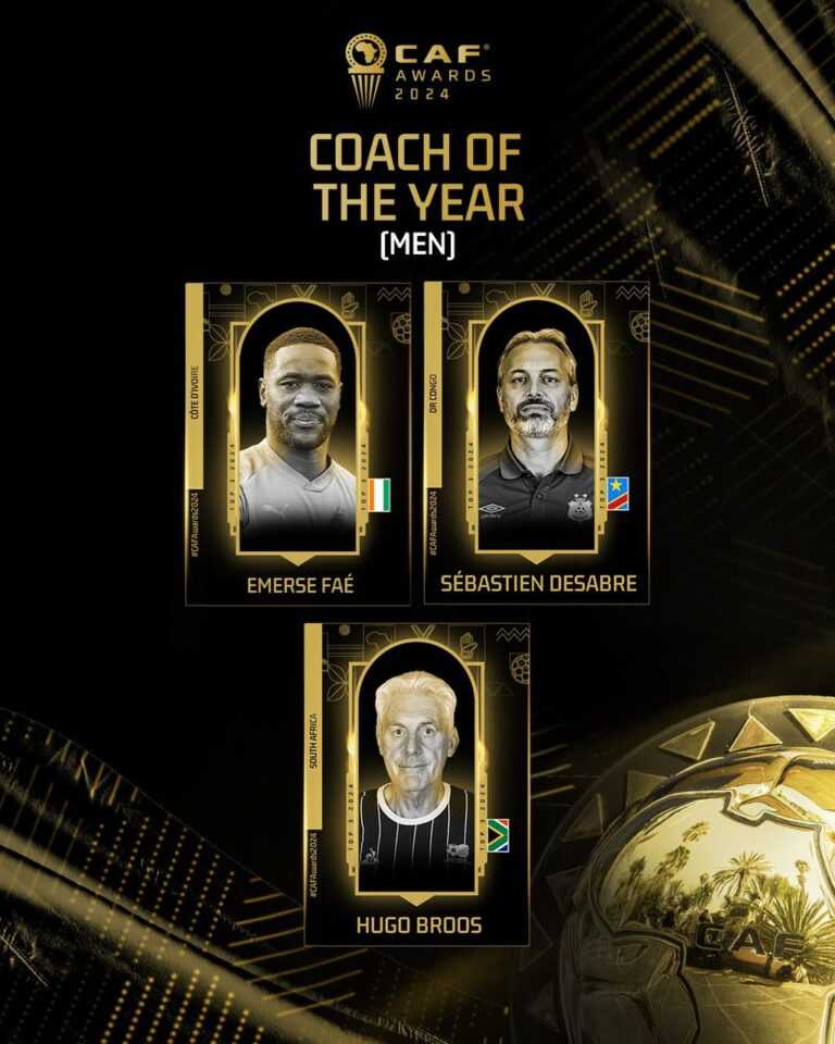 Meanwhile Emerse Fae (Côte d’Ivoire) Sebastien Desabre (DR Congo) and Hugo Broos (South Africa) have been shortlisted as the three finalists for the coach of the year award.