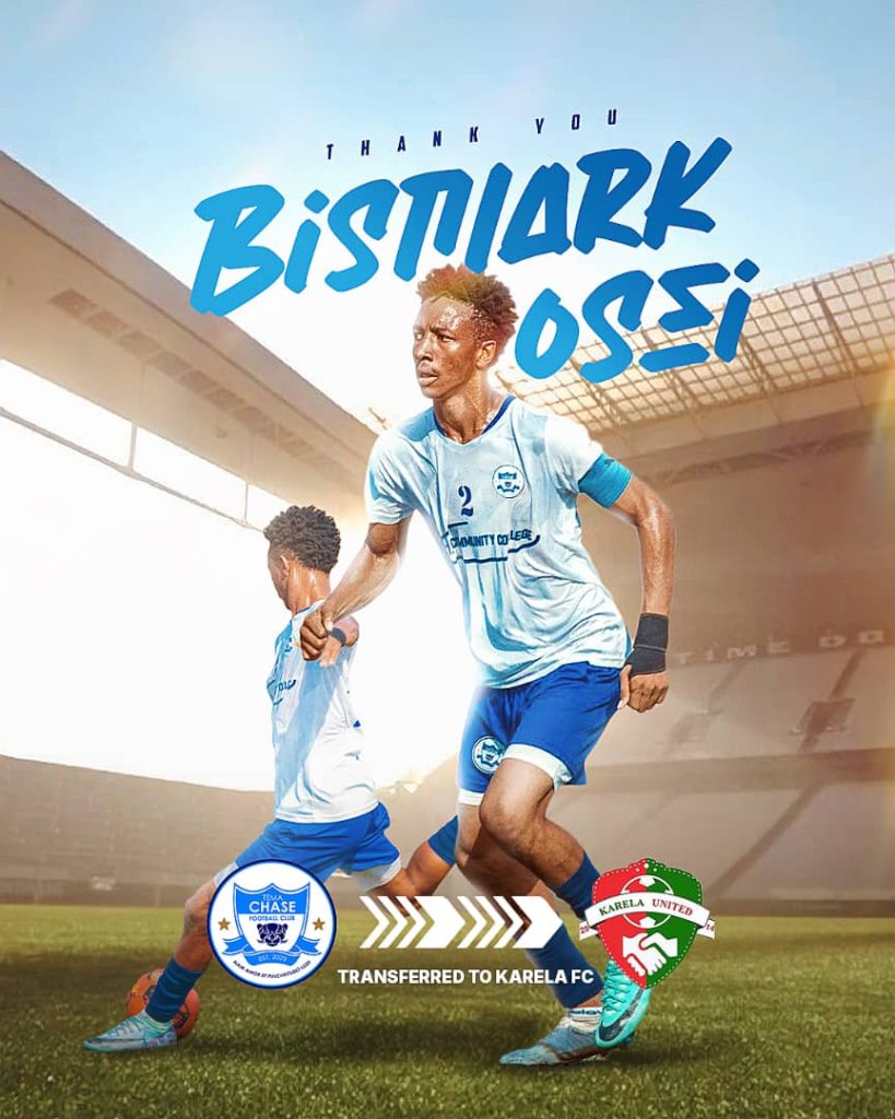 Ghana Premier League side, Karela United, have officially signed talented defender Bismark Osei ( Ramos) from the lower-tier side Chase Sporting Club.