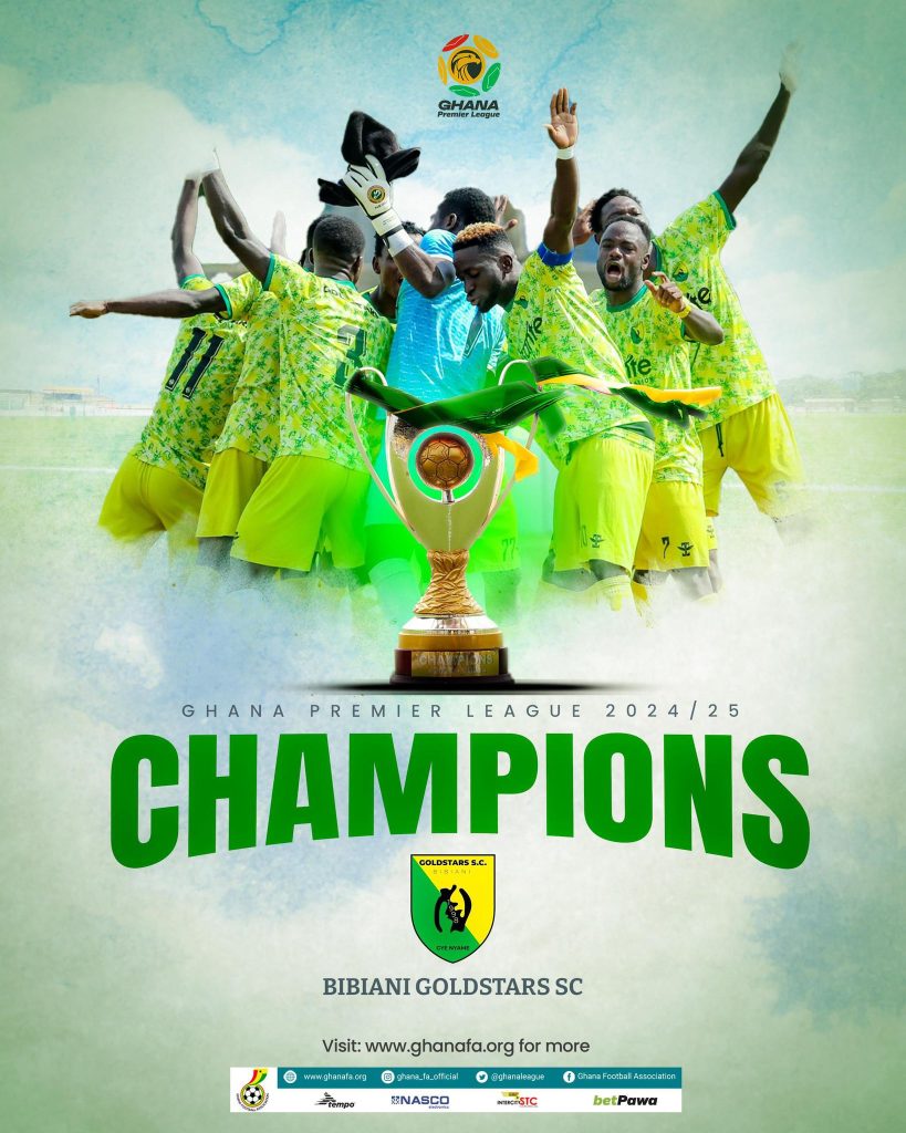 Bibiani Gold Stars have won the 2024/25 Ghana Premier League (GPL), four years since qualifying for the top football division in the country.