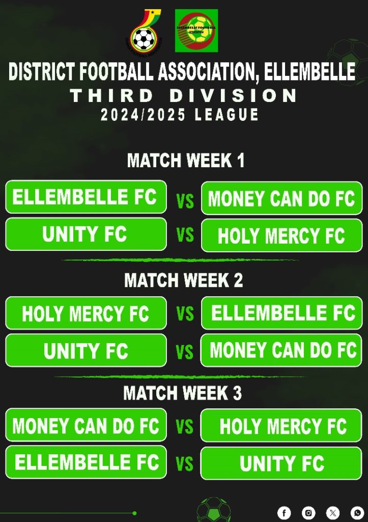 Ellembelle District Football Association ( EDFA) has released the fixtures for the 2024/25 Third Division League season.