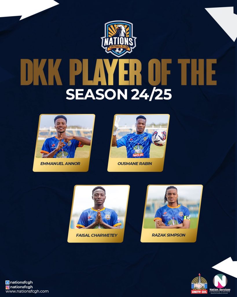 Emmanuel Annor, Rabin Ousmane, Faisal Charwetey and Captain Razak Simpson have all been nominated for the player of the season.